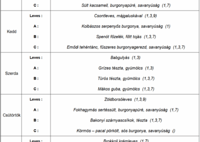 Az étterem 11.00 órától 14.00 óráig tart nyitva hétfőtől péntekig.